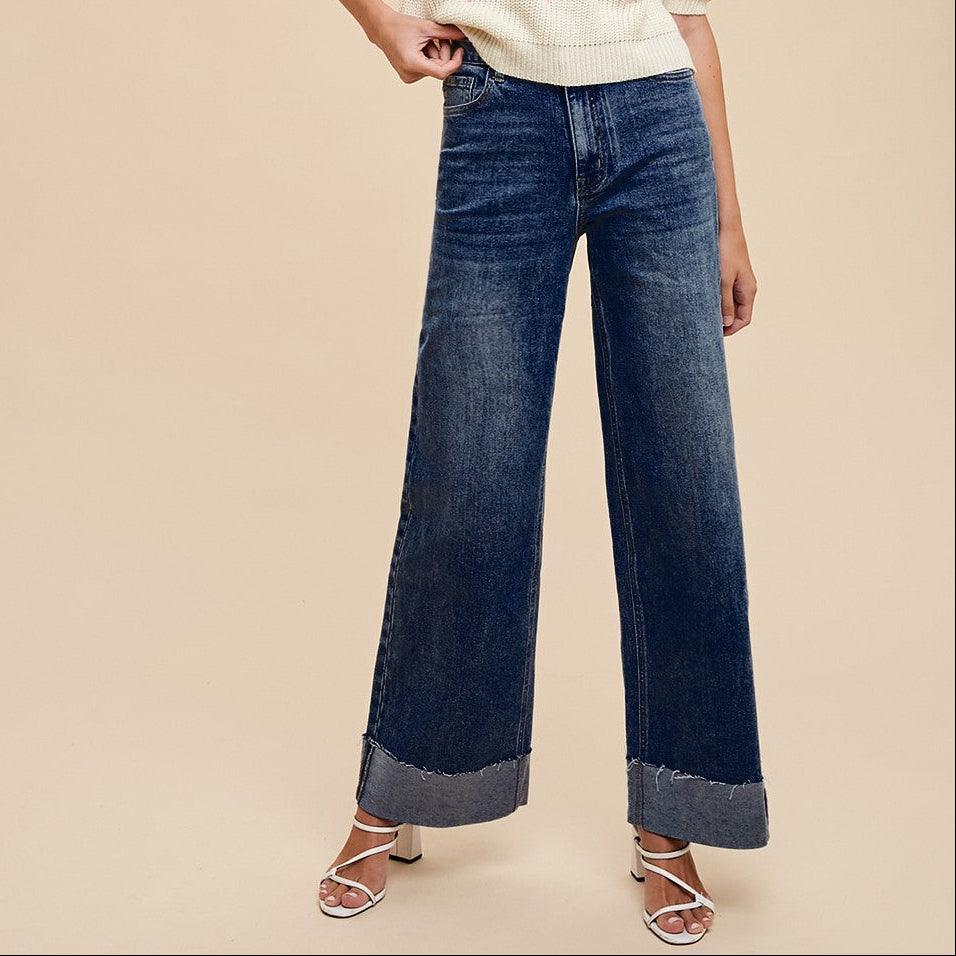 90s Stretch Cuffed Hem High Rise Straight Jeans