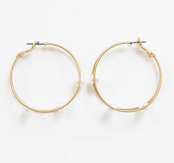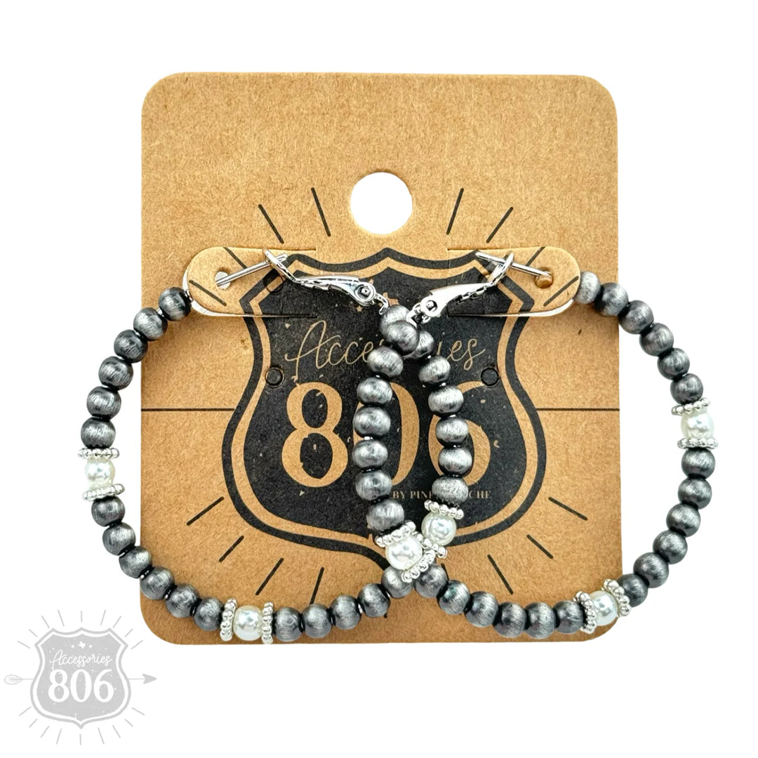 806 Silver and pearl bead hoop earring