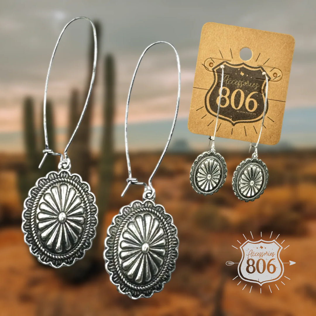 806 Western silver concho earring