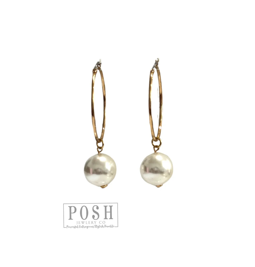 9PE491 PEARL DROP HOOP EARRING