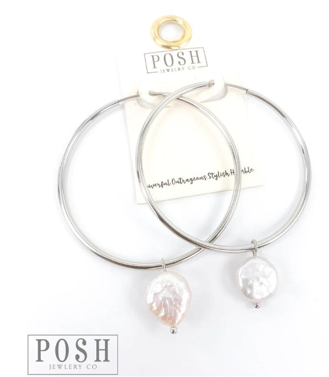 9PE232 Hoop earring with fresh water coin pearl (2 colors)