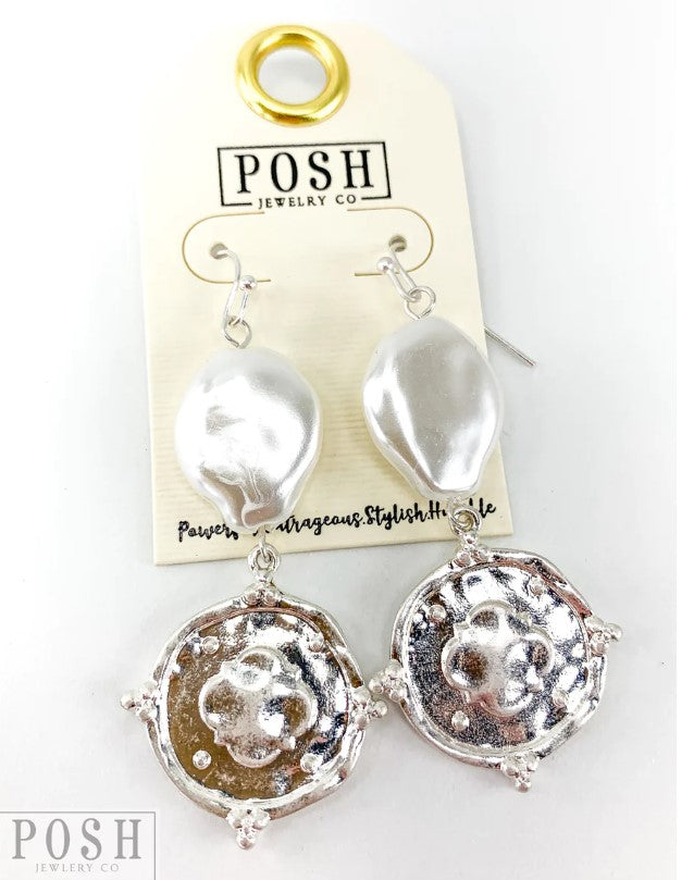 9PE096 Posh Flat pearlized bead and coin drop earring