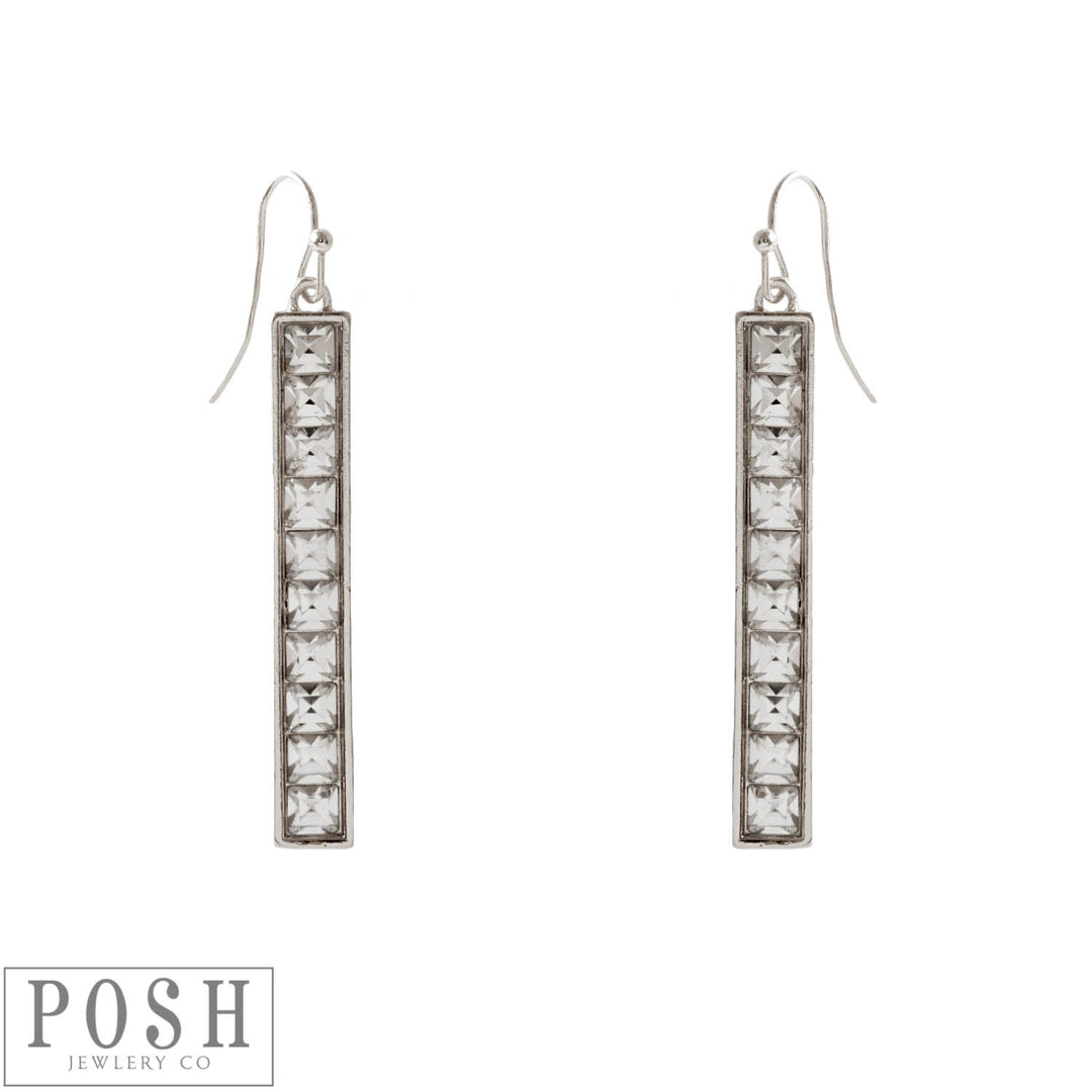 9PE202SCL SILVER Rectangle bar earring with square clear rhinestones