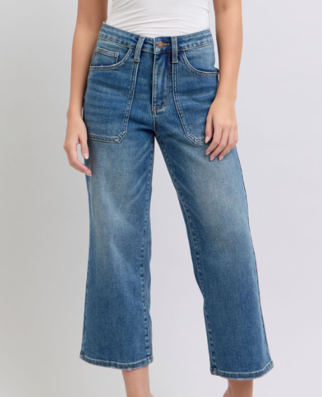 High Rise Criss-Cross Judy Blue Cuffed Jeans