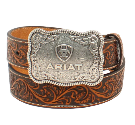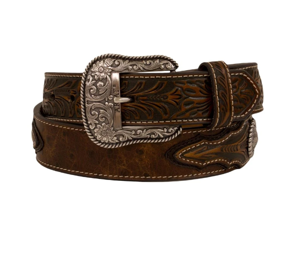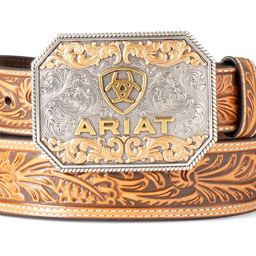 ARIAT FLORAL TAN EMBOSSED BUCKLE - ACCESSORIES BELT MEN - A1042208