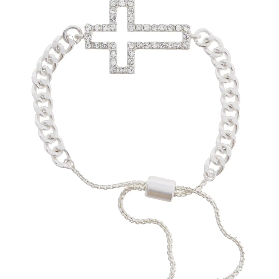 JM Kids "Silver Curb Chain with Clear Crystal Cross Bracelet