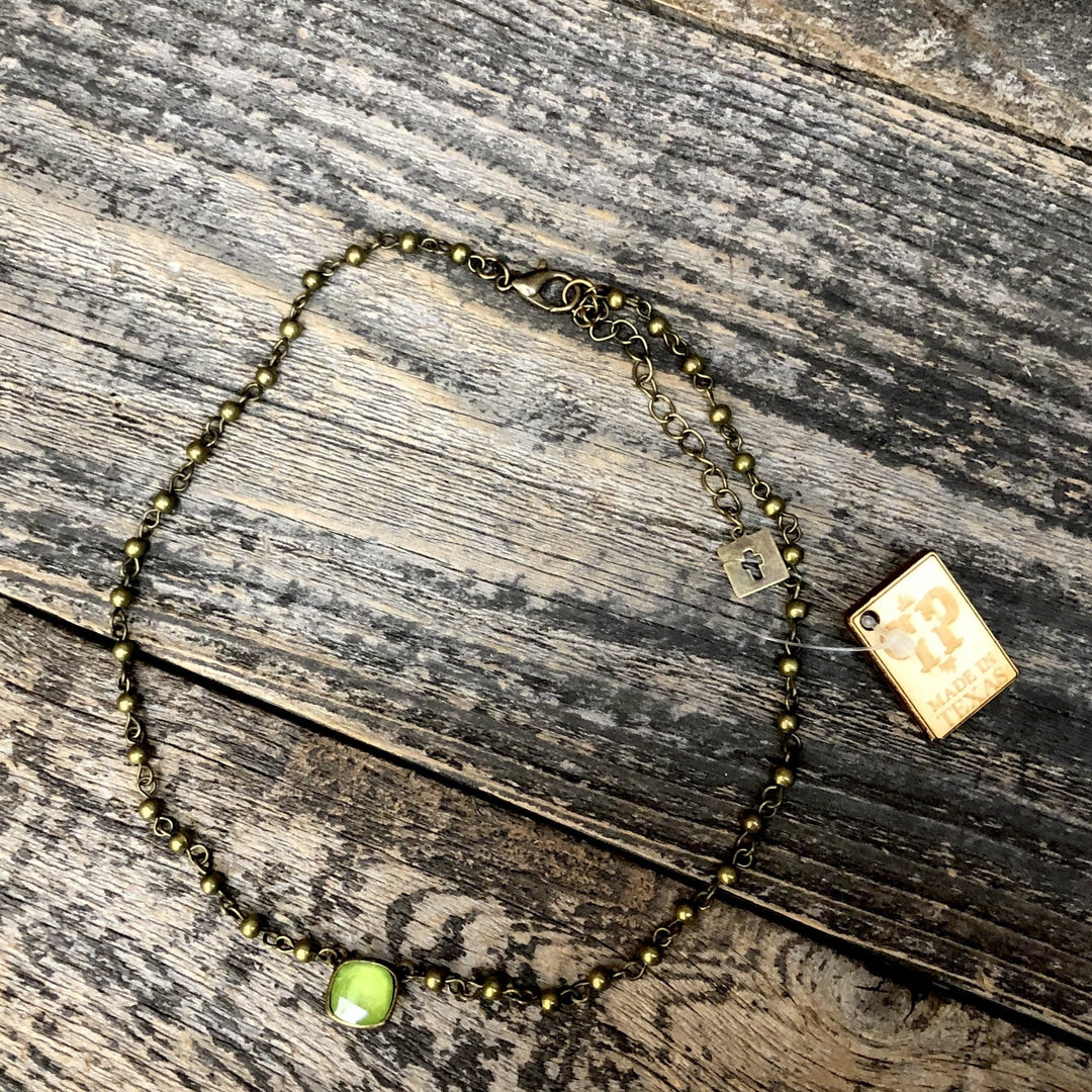 Lime 10mm Cushion Cut Beaded Necklace