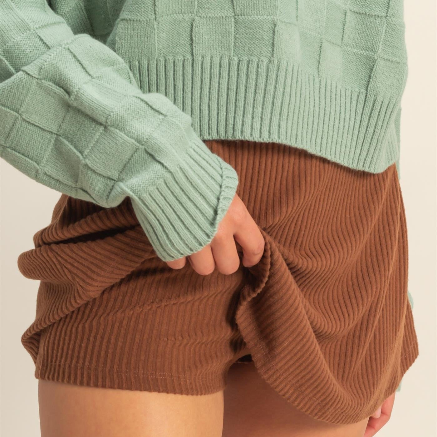 This versatile skort, crafted from ribbed fabric,