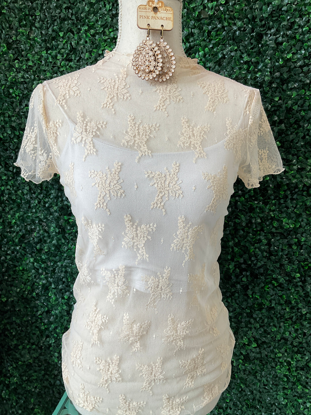 PINK RIBBON BOW LONG SLEEVE MESH TOP