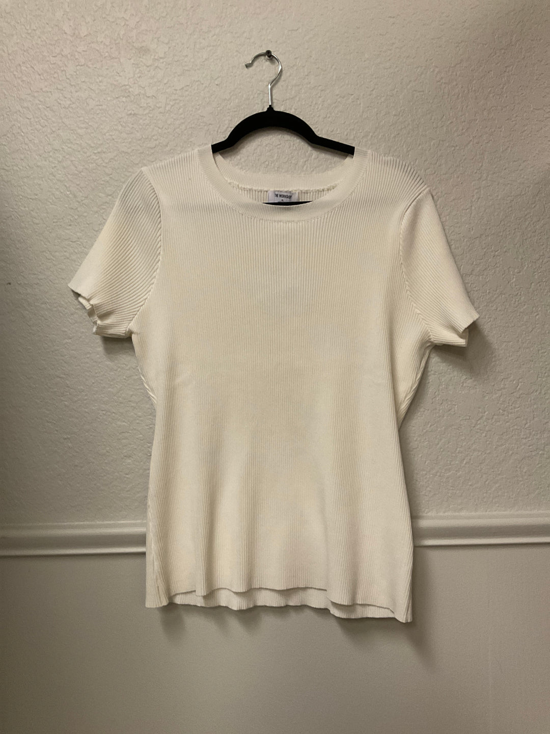 CREWNECK SHORT SLEEVE SWEATER KNIT PULLOVER-CURVY CREAM