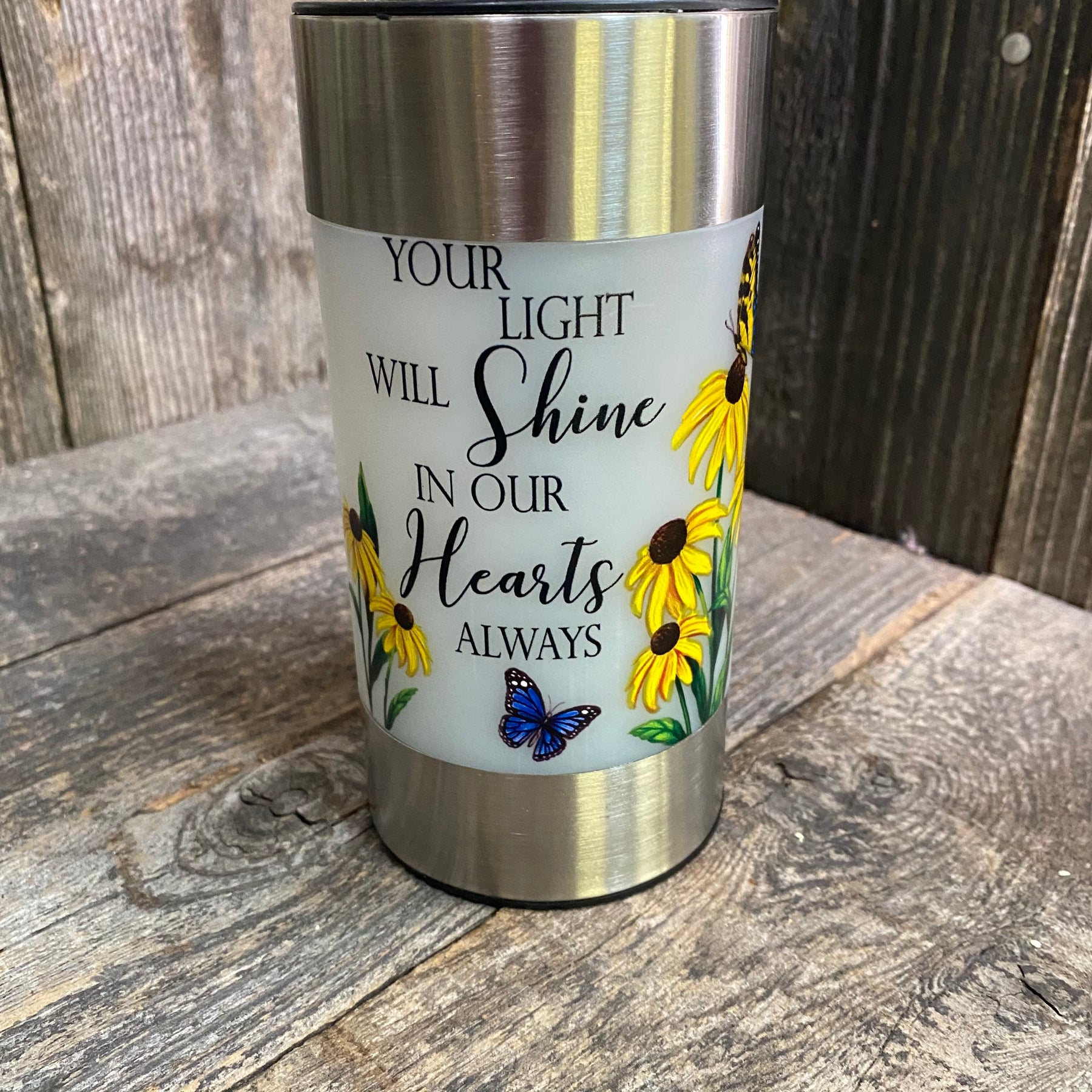 These LED solar stakes are made with a high-quality polyresin finish. The light will remain on for 8 hours with a full charge. The stake is detachable allowing the piece to be freestanding as well. Stake length: 4.25"
