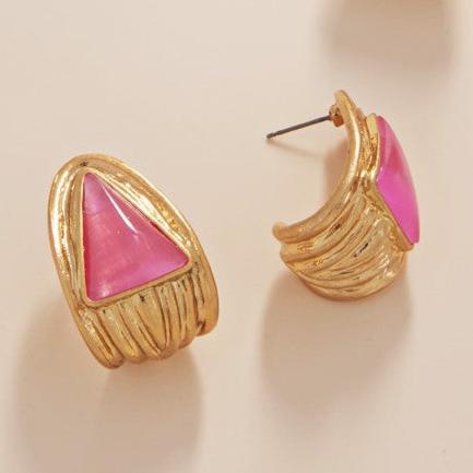 TRIANGLE VINTAGE RESIN FAUX STONE HOOP EARRINGS