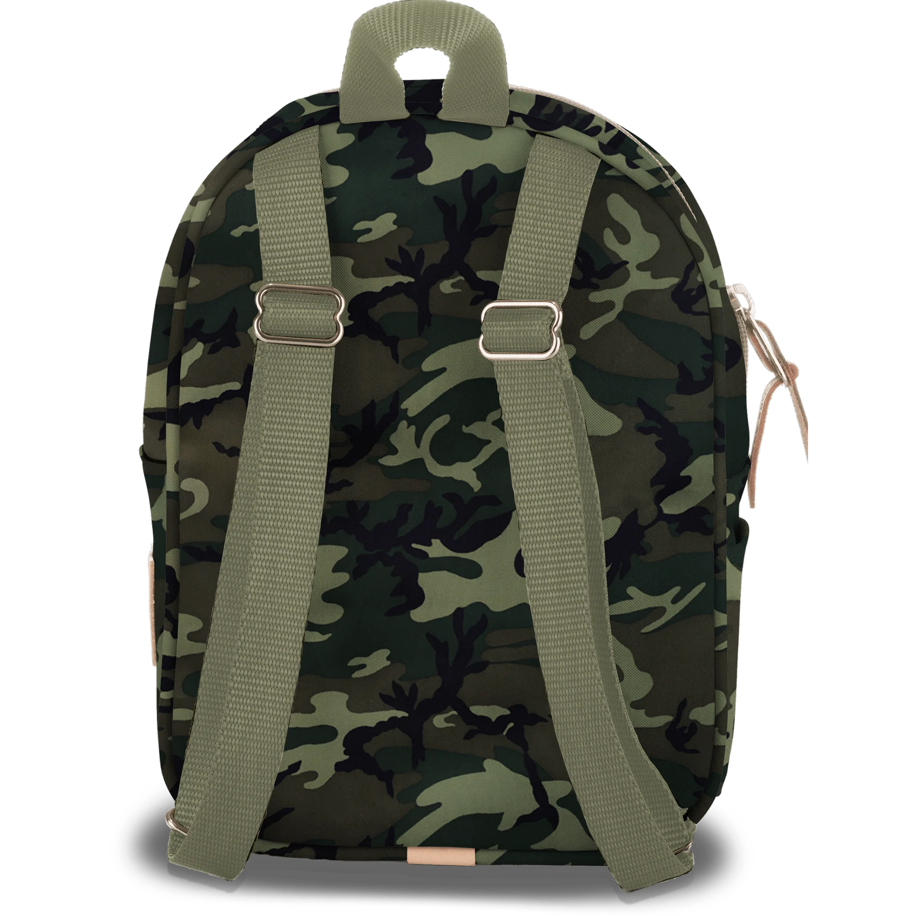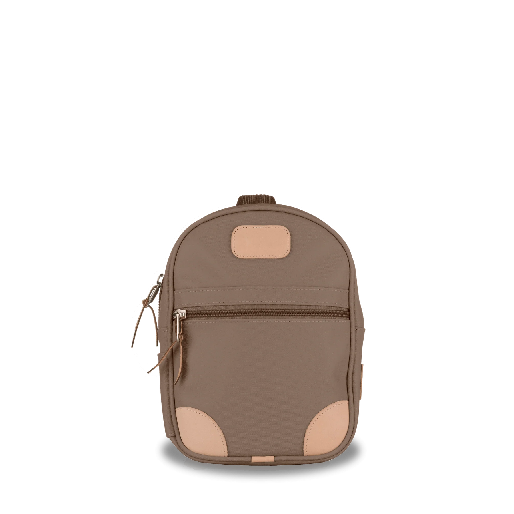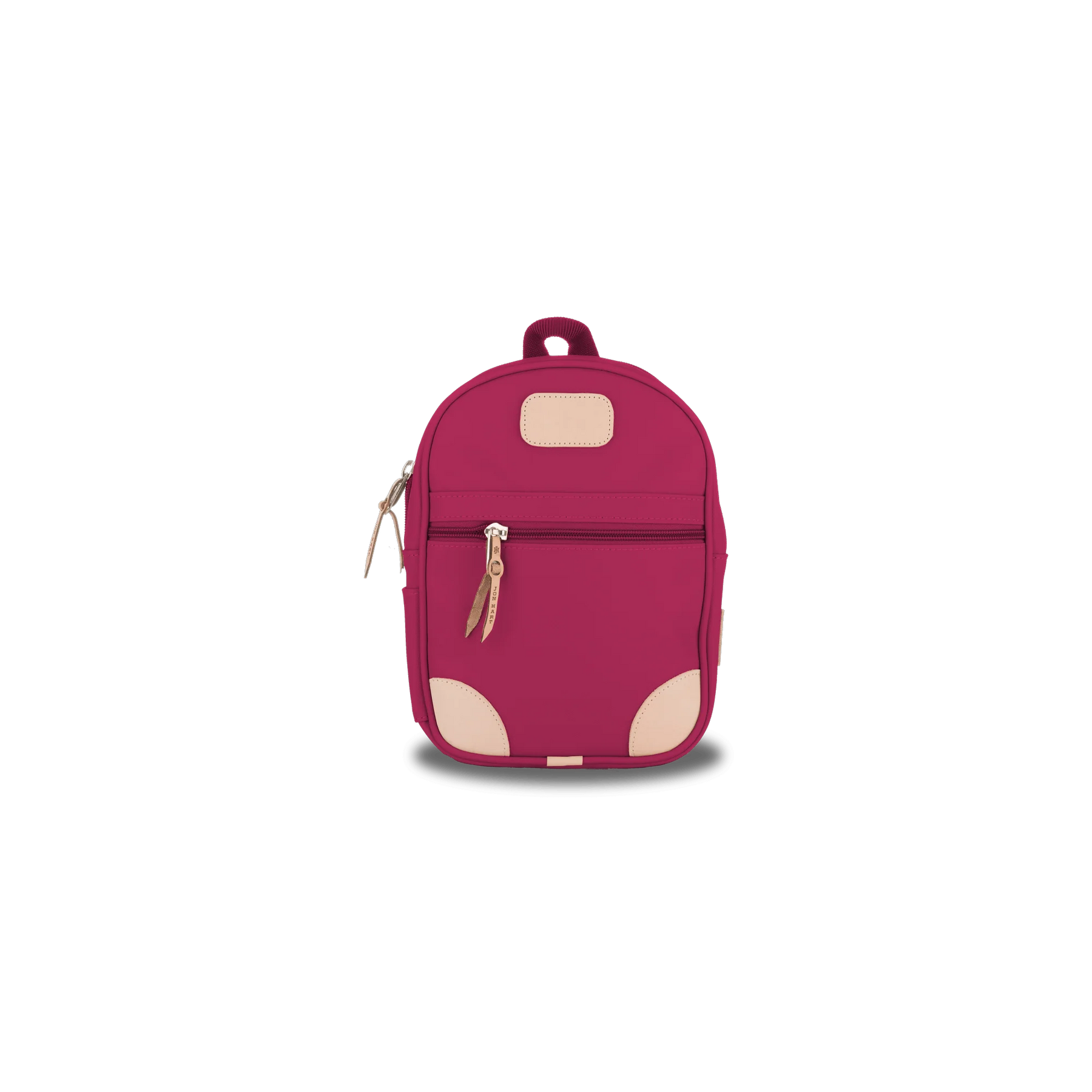 Start them young with a Jon Hart mini backpack. Perfect for the little that wants to be a big kid and still travels light. With just enough room for the essentials this bag will stay light so that you don't end up carrying it for them. Coated canvas with natural leather trim.