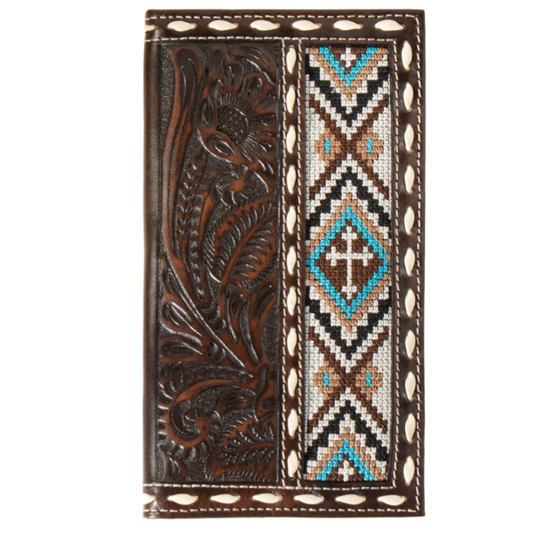 NOCONA MEN'S FLORAL EMBOSSED CROSS EMBROIDERED BROWN RODEO WALLET-N500044402