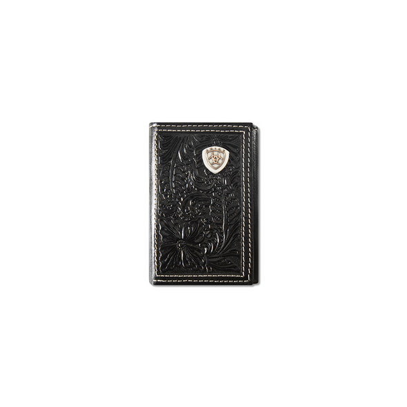 ARIAT FLORAL EMBOSSED SHIELD BLACK - ACCESSORIES WALLET - A3564601