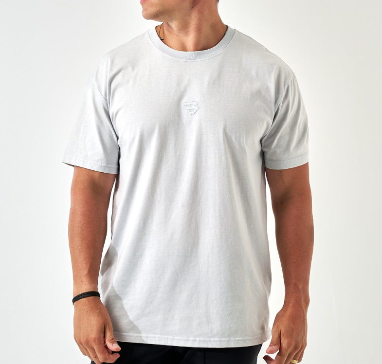 VINTAGE WASHED B LOGO TEE - LIGHT GREY
