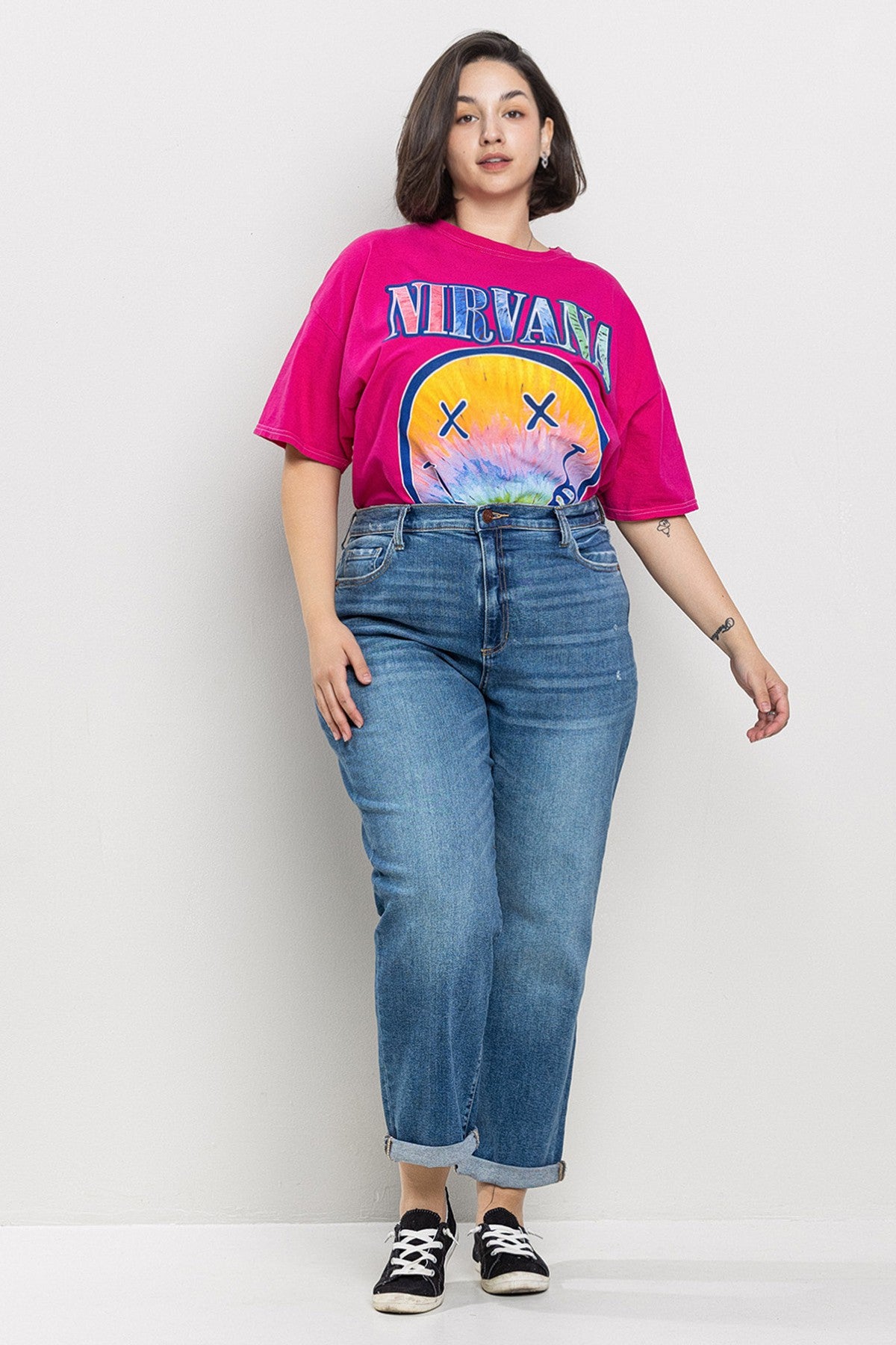 HIGH RISE PLUS SIZE TOMBOY SKINNY JEANS WITH LIGHT DISTRESSING AND ROLLED UP HEM