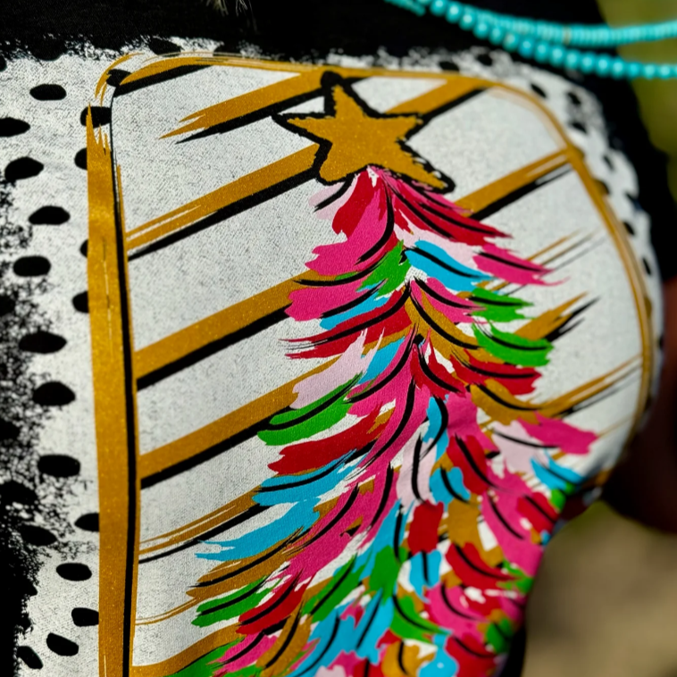 An adorable and cute Christmas tree that has a paintbrush look to it! It's bright, fun and a great one to have in your closet for this Christmas!