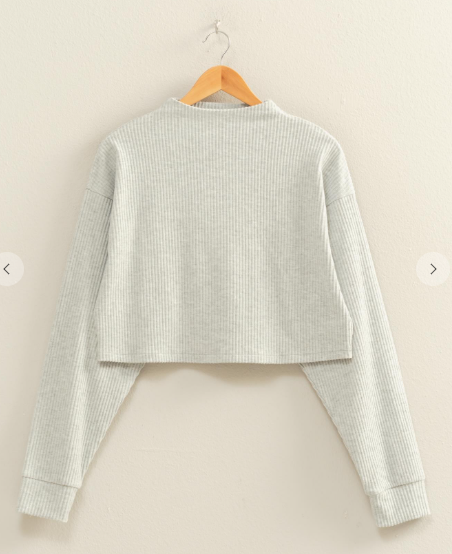 Tish Cropped High Neck Ribbed Top- Heather Gray