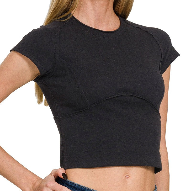 Tish Cropped High Neck Ribbed Top- Heather Gray