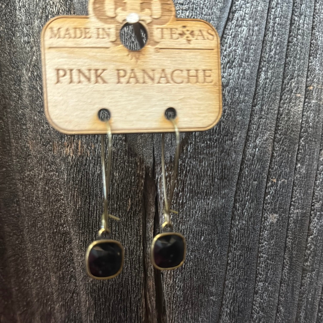 This kidney wire earring features an Austrian cushion cut 10mm crystal stone in a plated brass setting.  Approximately 1.75 inches in total length.