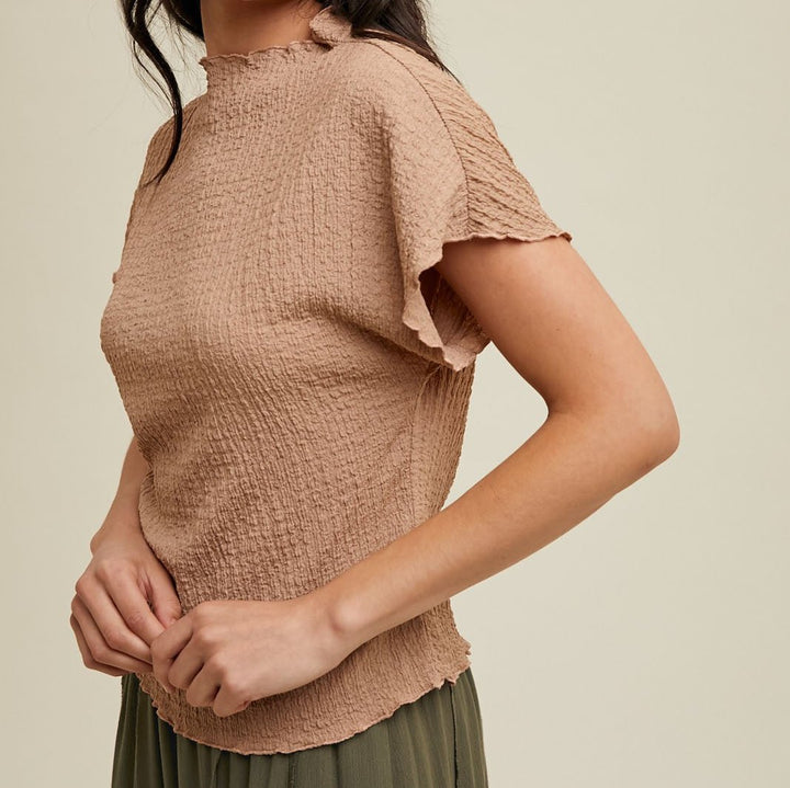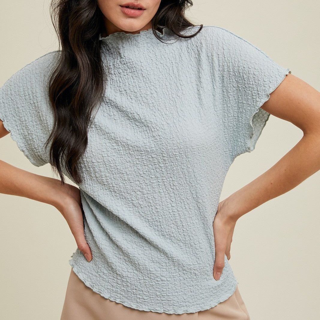 LETTUCE TEXTURED MOCK NECK BLOUSE
