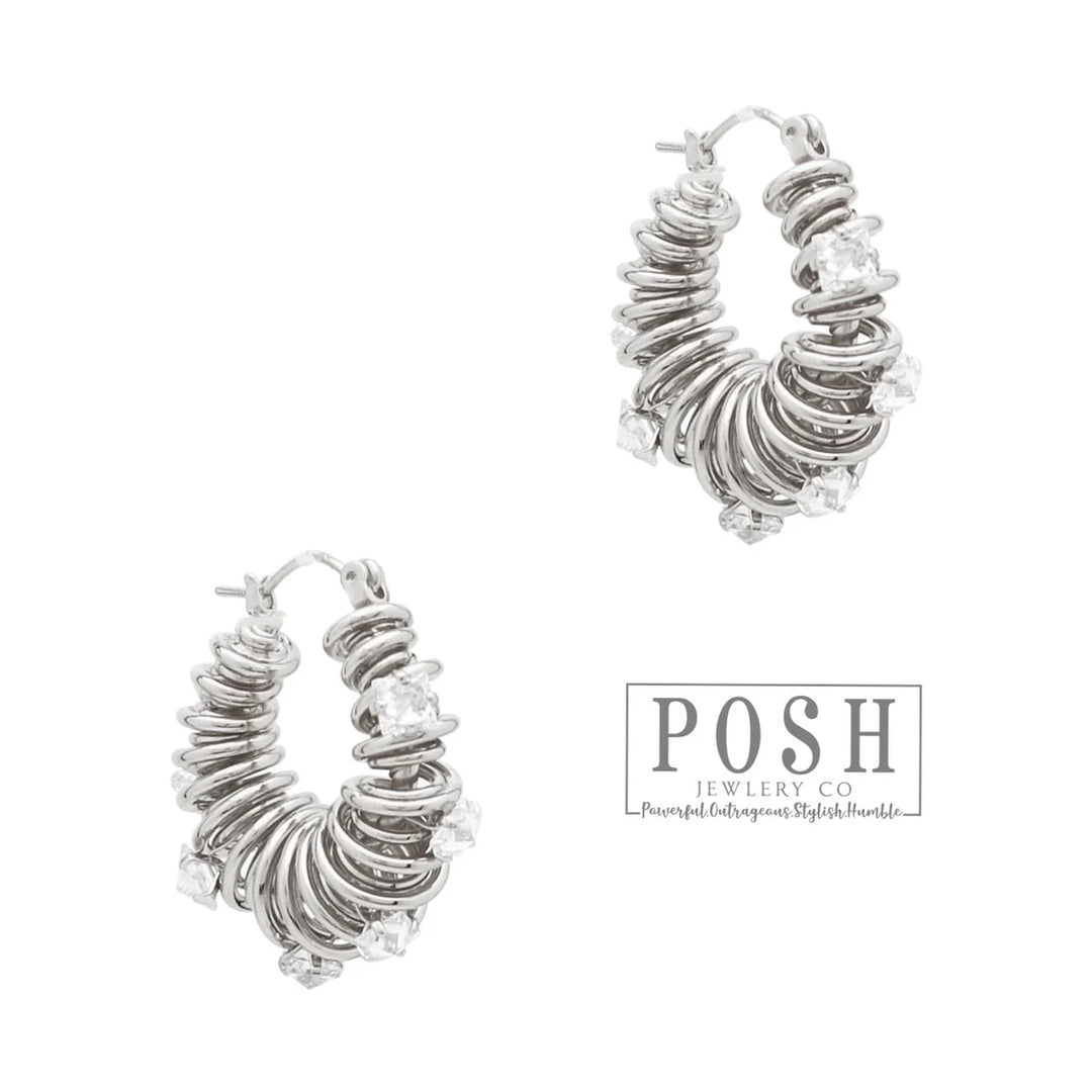 These slinky look hoop earrings feature sparkling rhinestone beads. Approximately 2 inches in length.